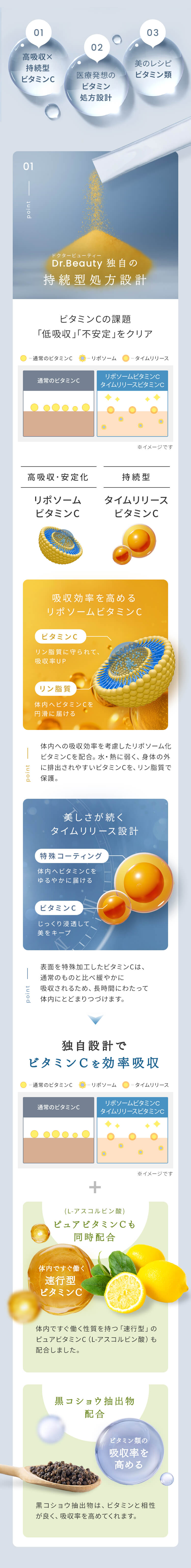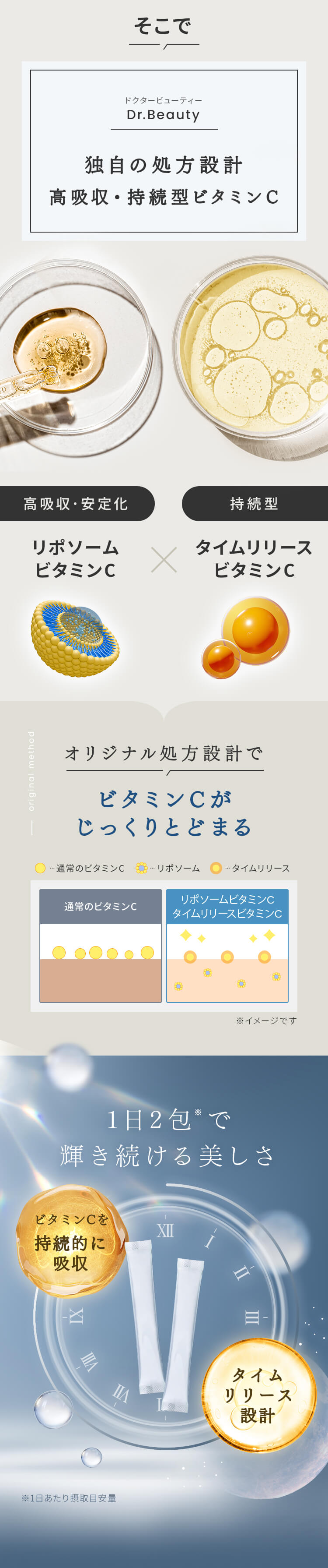 リポソーム化×タイムリリース型ビタミンCを独自配合。 -
